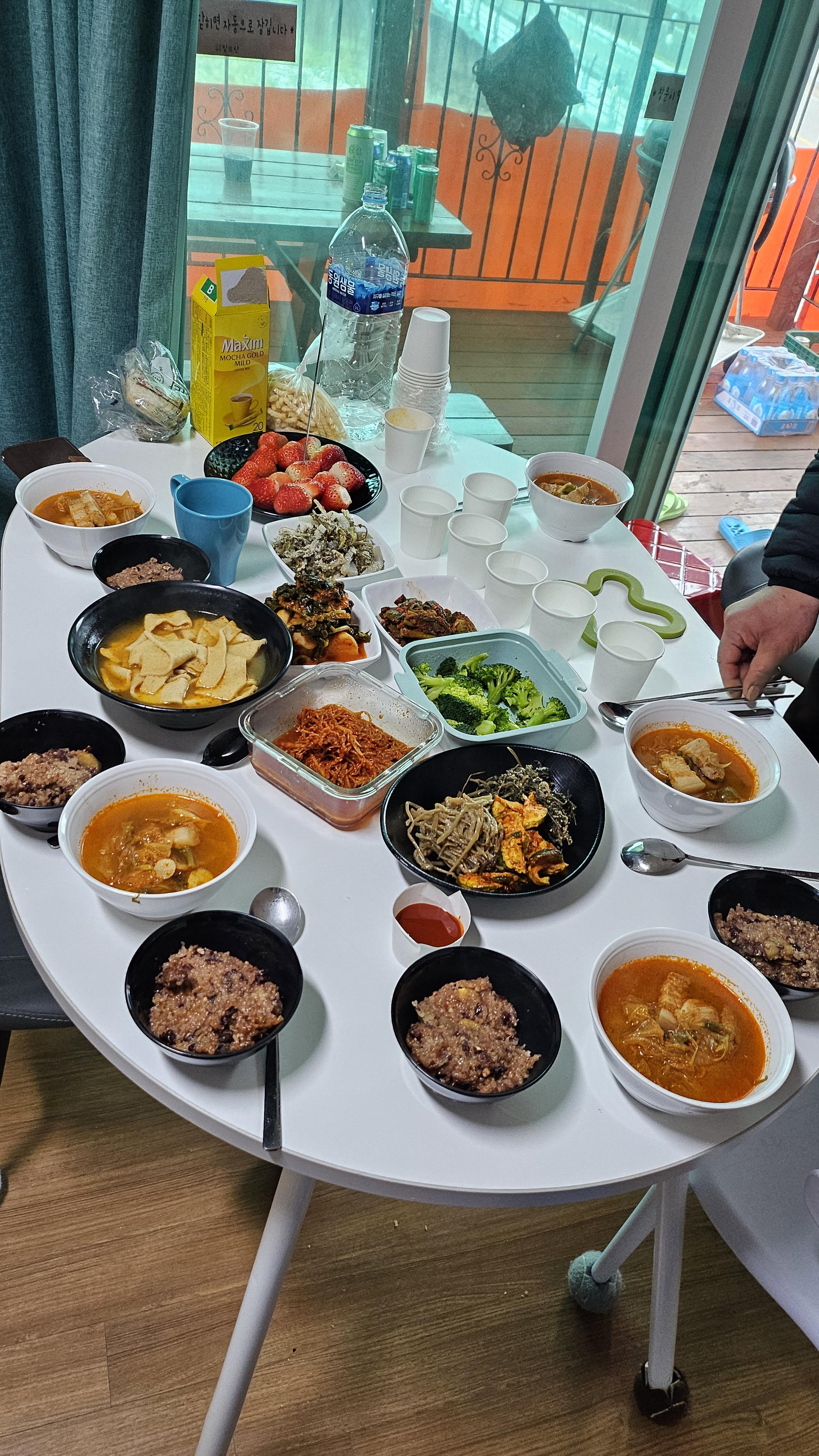 펜션으로 들어왔더니... 우와!!! 아침 준비가 되어있네!!!!