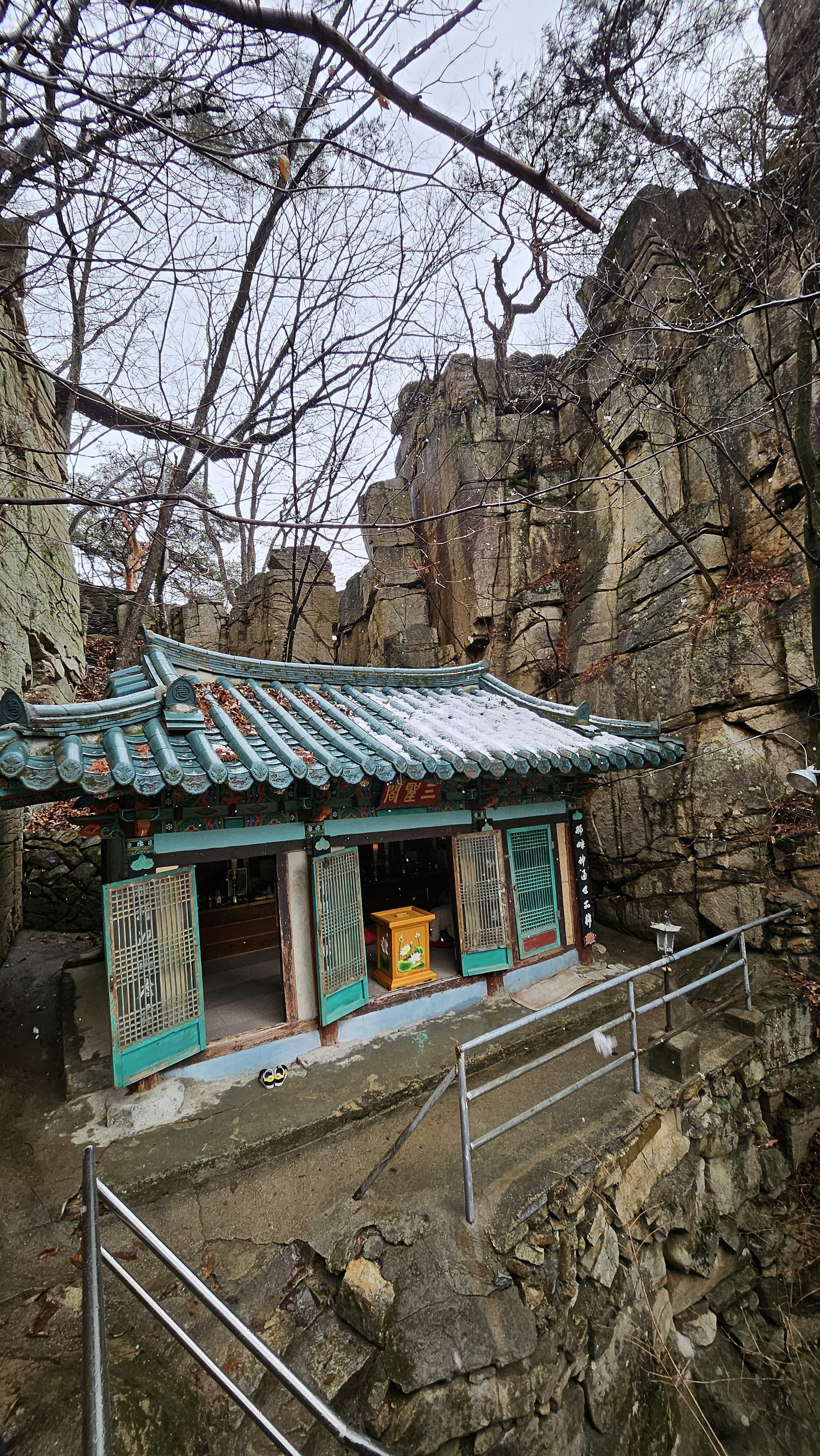 절벽 사이의 계단을 오르니... 사인암의 삼성각이 있구나...