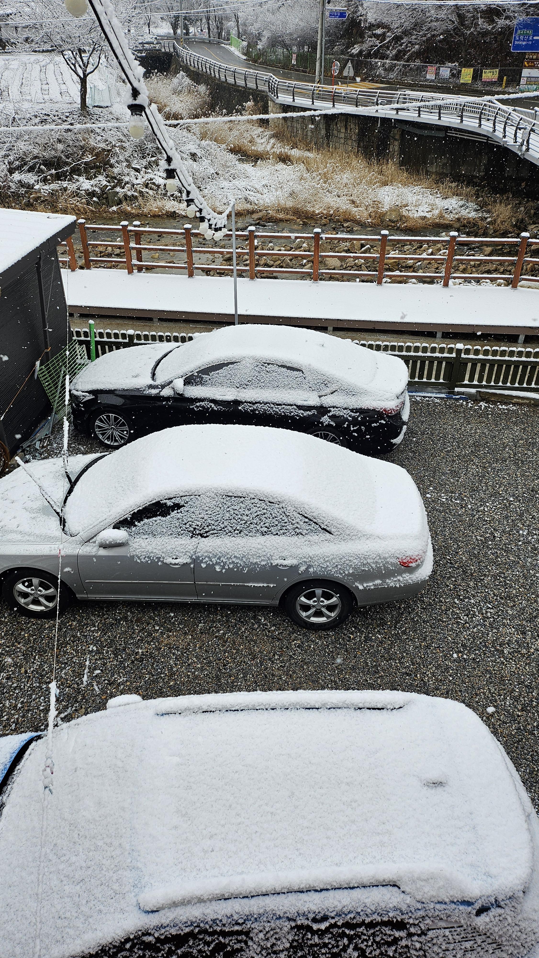 자고 일어났더니... 눈이 제법 내렸네... 윽!!! 까망이 세차하고 내려왔는데... 된장...